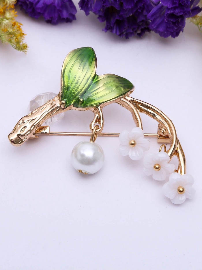 Элегантная брошь с изящным ландышем в бело-зелёных тонах на золотистой основе станет утончённым акцентом в вашем образе. Компактный размер в 3,5 см позволяет использовать украшение как в повседневном стиле, так и для особых случаев, подчеркивая женственность и природную свежесть.