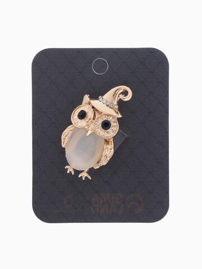 Эта брошь с изображением филина в колпачке — изысканное украшение, которое привнесёт в образ нотки загадочности и утончённости. Длина изделия составляет 4 см, что делает его заметным, но при этом не перегружает общий стиль. Чёрно-белая цветовая гамма в сочетании с золотой фурнитурой создаёт элегантный контраст, подчёркивая художественную выразительность аксессуара.