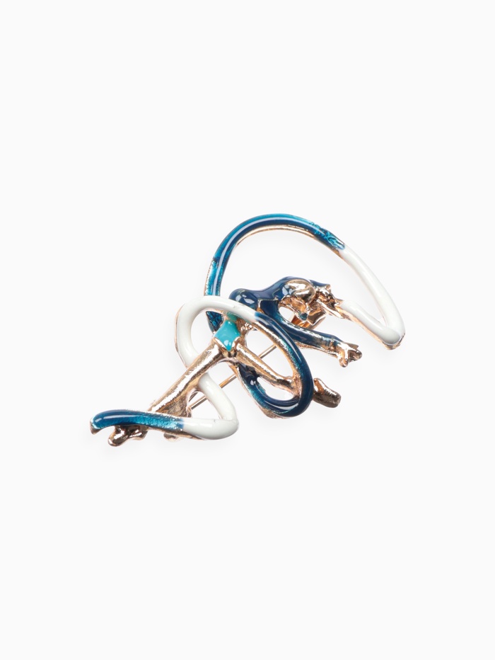 Изящная брошь с изображением гимнастки в динамичном движении воплощает грацию и силу женственности. Насыщенный синий цвет эмали на золотистой металлической основе подчёркивает элегантность и выразительность образа, делая украшение ярким акцентом длиной 4 см.