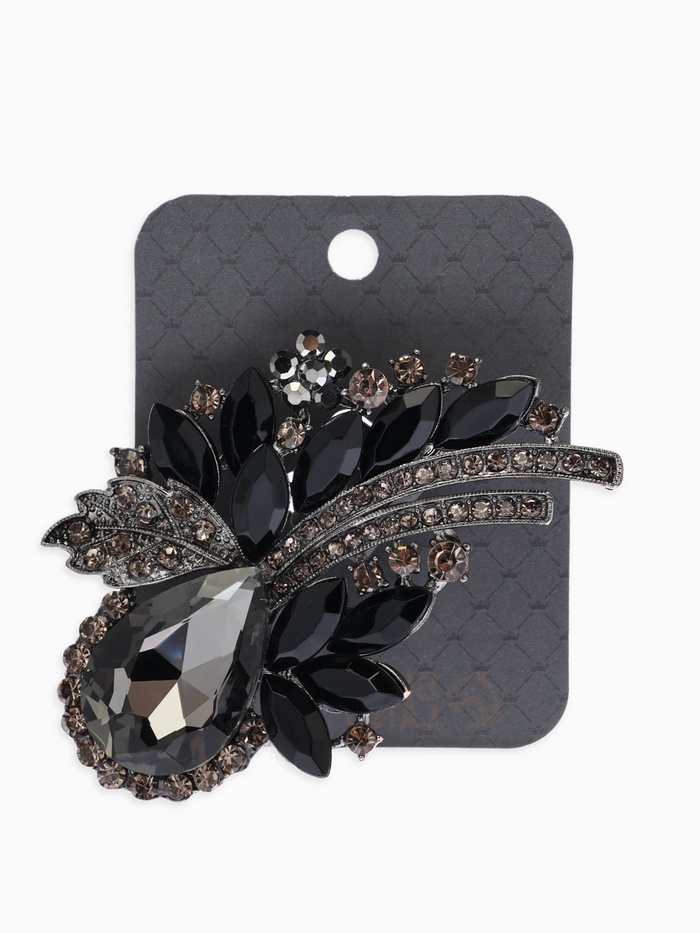 Брошь "Императрица" букет, цвет чёрно-серый в сером