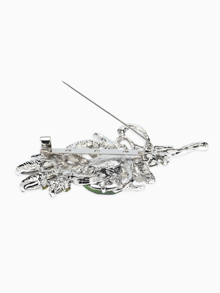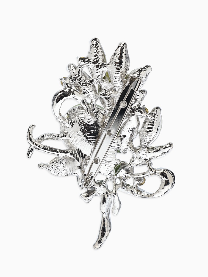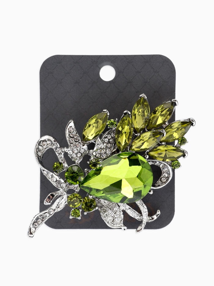 Брошь "Императрица" букет, цвет светло-зелёный в серебре
