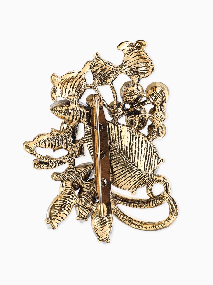 Брошь "Императрица" бутоны роз, цвет светло-коричневый +АВ в чернёном золоте