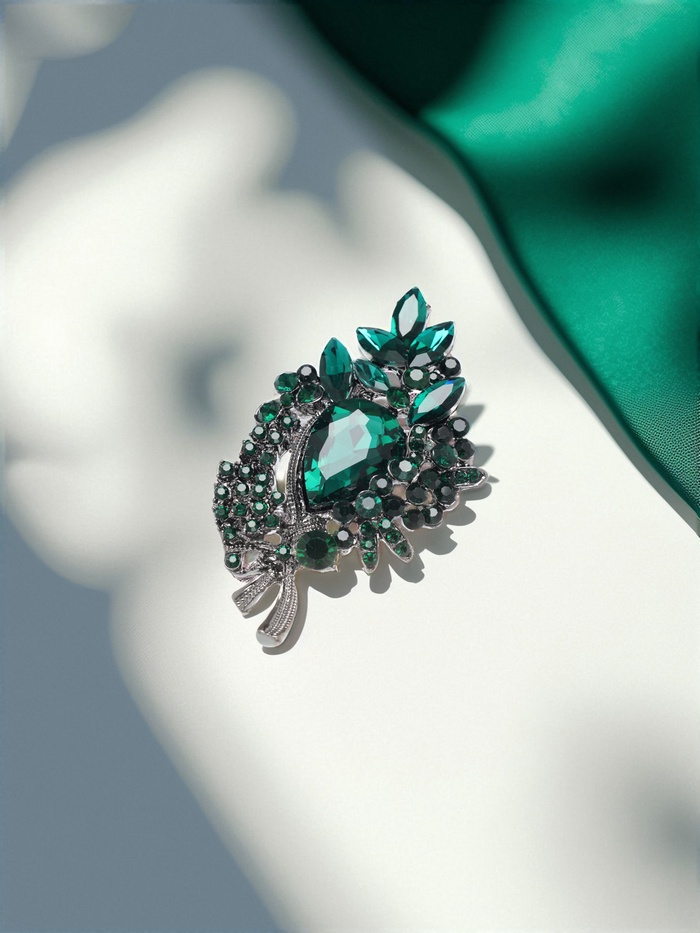 Гармония изящества и выразительности воплощена в этой броши с изумрудным оттенком, которая словно оживляет образ своей владелицы. Серый металл с благородным матовым блеском и тщательно проработанная ветвь создают эффект утончённой природной красоты, подчёркнутой сверкающими вставками из страз и стекла.