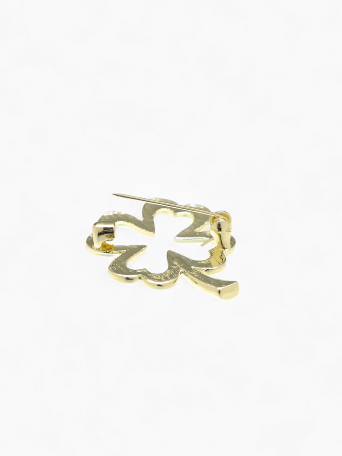 Металлическая основа обеспечивает прочность и долговечность изделия, а золотой цвет фурнитуры придаёт броши благородный и тёплый оттенок. Отсутствие вставок подчёркивает чистоту линий и элегантность формы, делая брошь стильным символом удачи и гармонии.