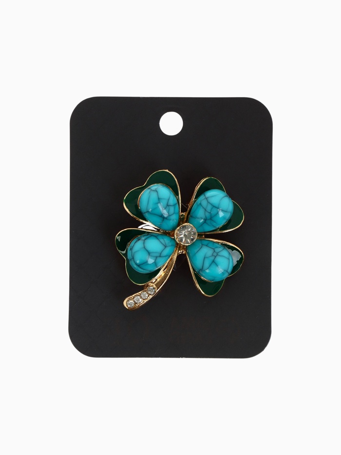 Брошь с изображением клевера, украшенная бирюзой и выполненная в золотистом цвете, привлекает внимание своей лёгкостью и изяществом. Компактный размер в 4 см делает её универсальным аксессуаром, который гармонично дополнит как повседневный, так и праздничный образ.
