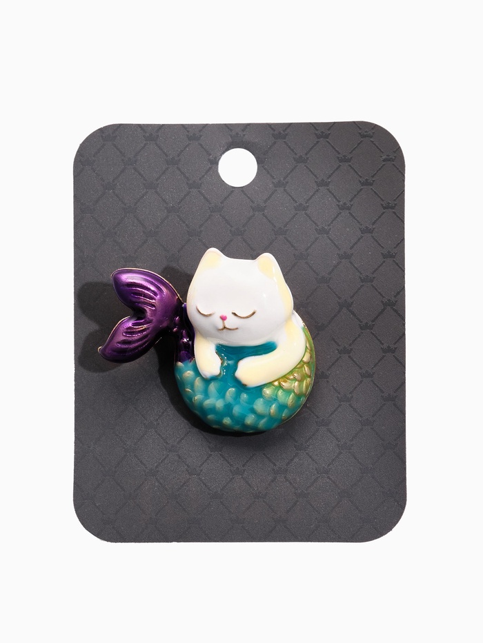 Брошь "Кошечка-русалка", цветная в золоте