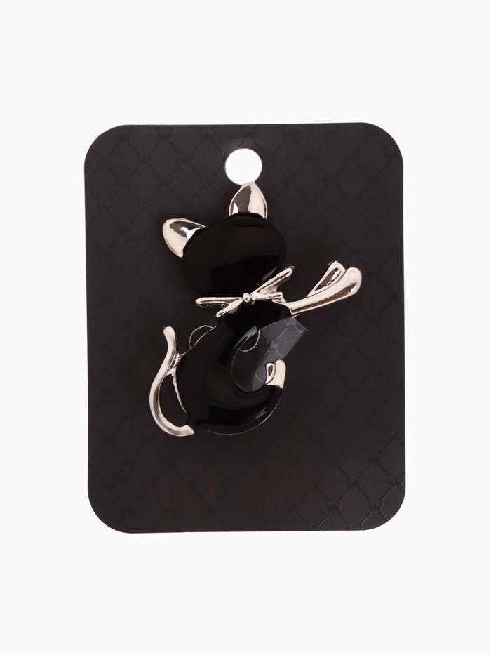 Брошь «Кошечка» с бантом, чёрная в серебре