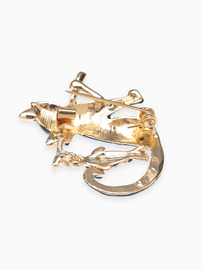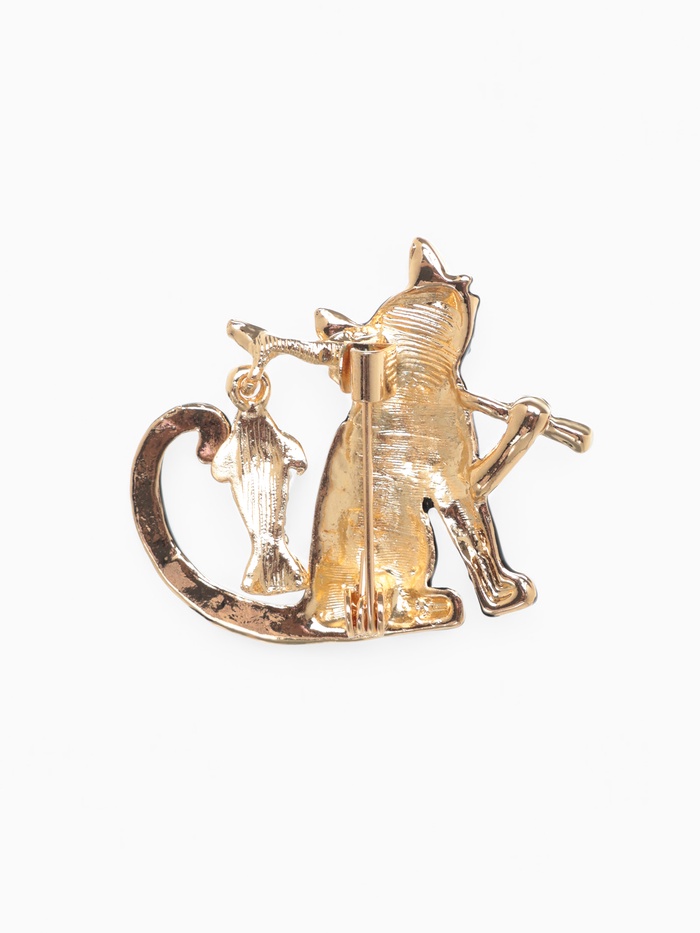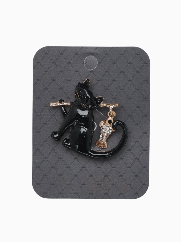 Эта изящная брошь в чёрном цвете с золотистой фурнитурой воплощает в себе утончённость и игривость. Компактный размер в 3 см делает её универсальным украшением, которое легко впишется в любой образ — от повседневного до праздничного. Символика кота с рыбкой добавляет изделию особый шарм и подчёркивает индивидуальность его обладательницы.