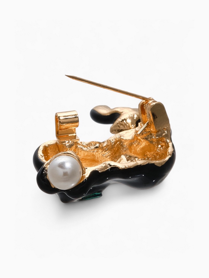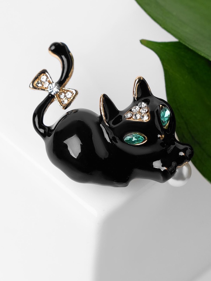 Миниатюрная брошь с изображением котёнка воплощает нежность и изящество в каждом штрихе. Чёрно-белая гамма с золотистыми элементами придаёт изделию утончённый контраст и лёгкий блеск, который притягивает взгляд и подчёркивает индивидуальность.