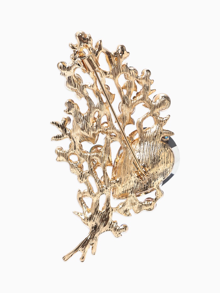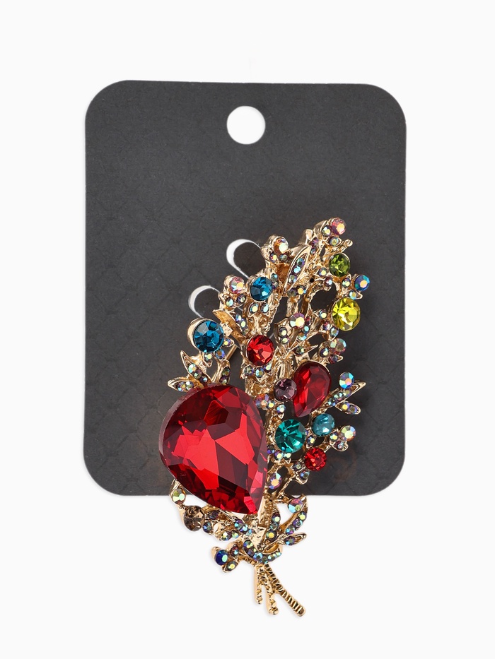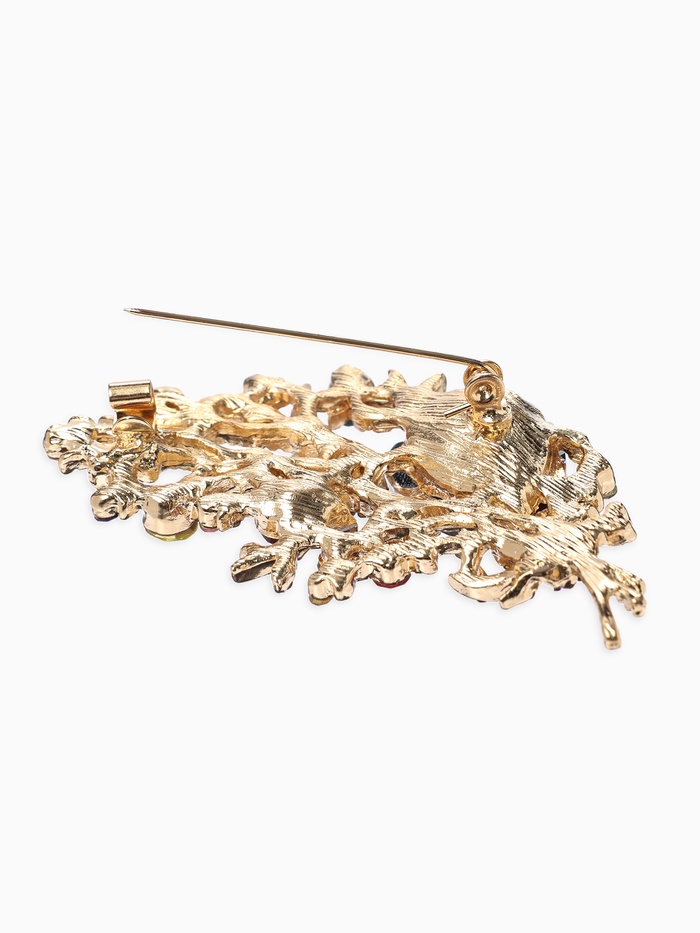 Брошь «Лист осенний ажурный», стразы, разноцветная в золоте