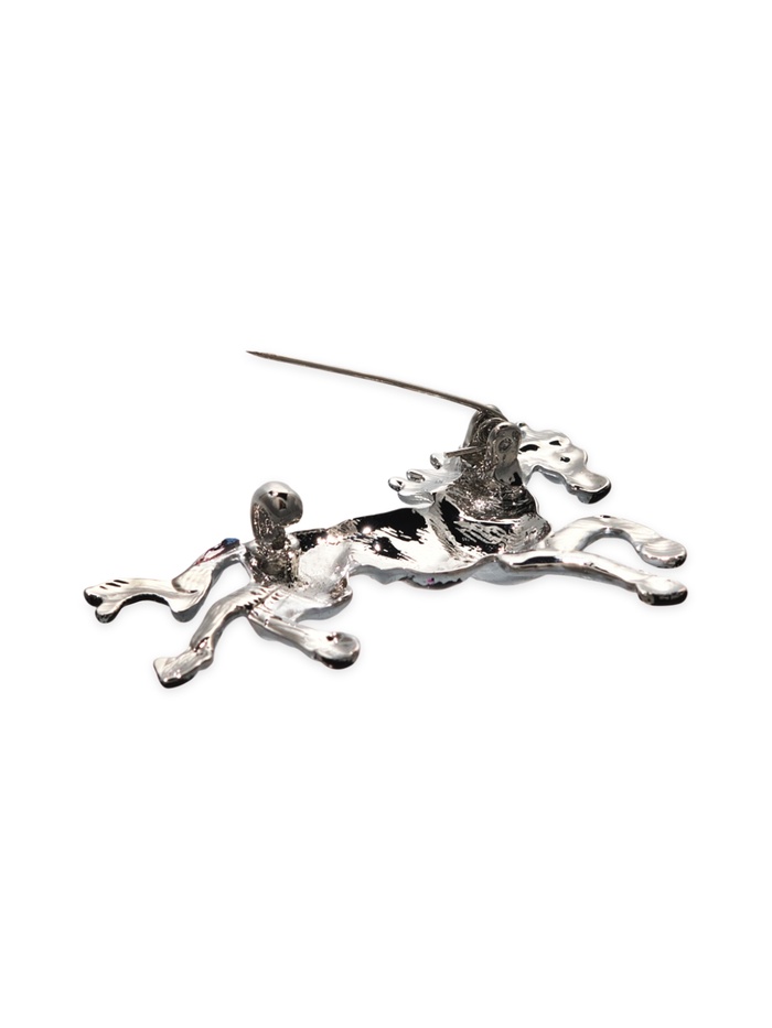 Почувствуйте дух приключений и добавьте капельку магии в ваш образ с помощью броши в виде лошади. Ее тело, покрытое серебристым отливом, словно настоящая лошадь, бегущая сквозь лунную ночь, придаст вам таинственности и харизмы.