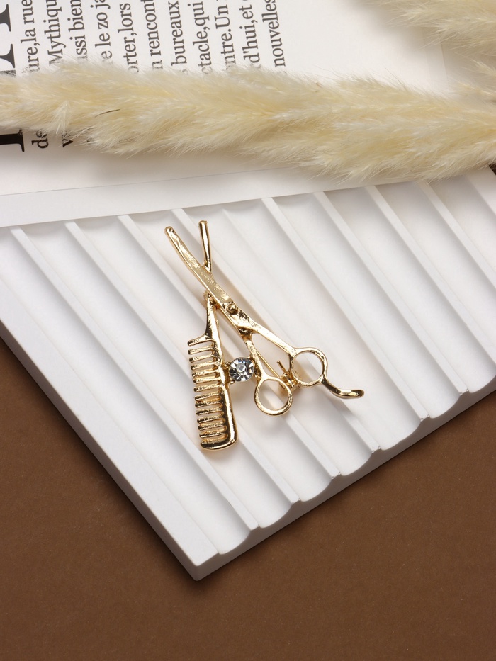 Изготовленная из прочного металла, эта брошь не только выглядит стильно, но и обладает высокой долговечностью. Она станет отличным подарком для профессионалов в области парикмахерского искусства или просто для любителей красоты и стиля. Упаковка с открыткой добавляет особый шарм и делает её идеальным подарком на любой праздник.