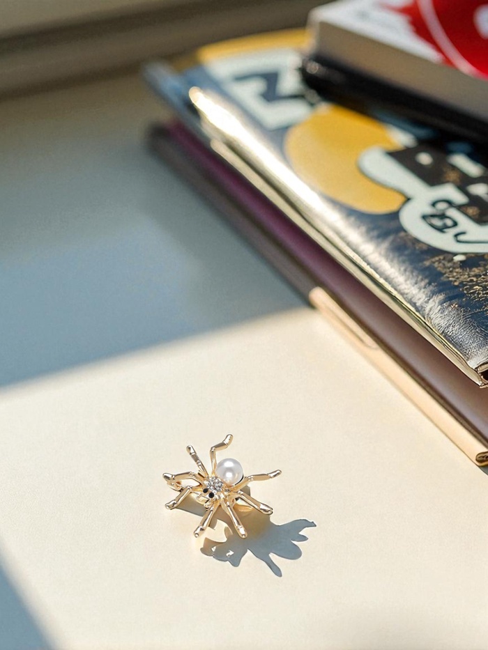 Брошь в виде паука с белой жемчужинкой на золотистой основе — это уникальное сочетание изящества и оригинальности. Длина украшения 5 см позволяет ей гармонично вписаться как в повседневный, так и в праздничный образ, добавляя образу загадочности и утончённого шарма.