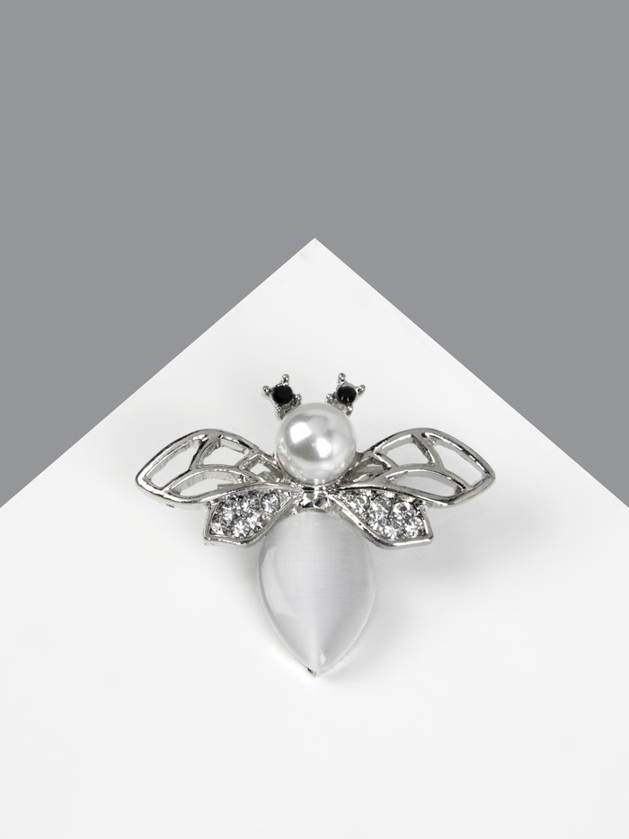 Эта изящная брошь с изображением пчелы привлекает внимание своим утонченным дизайном и нежным белым цветом в серебряной оправе. Длина изделия всего 3 см, что делает его универсальным аксессуаром для женщин любого возраста — от дочери до бабушки. Ажурные крылья придают броши легкость и воздушность, подчёркивая её изысканность.