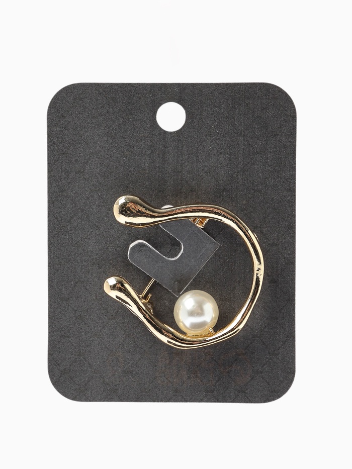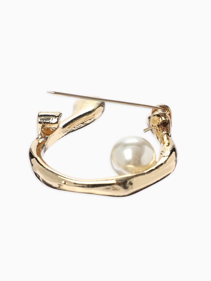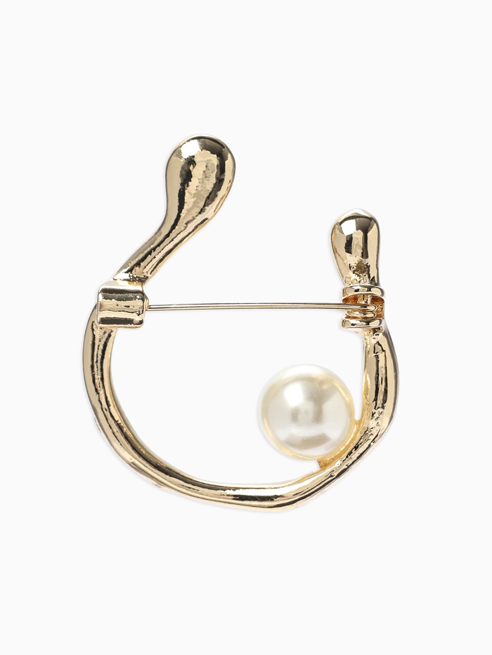 Брошь «Подкова с бусиной», №10, белая в золоте