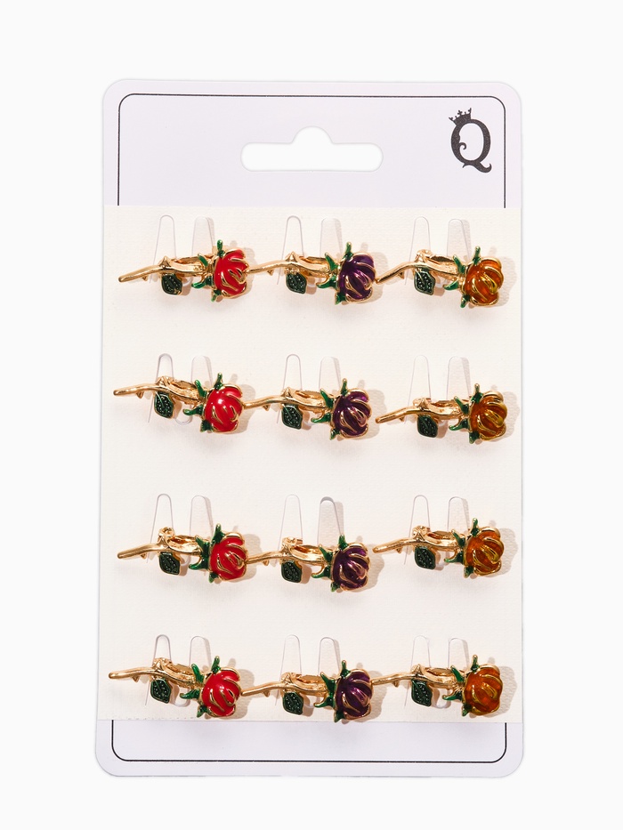 Брошь «Роза» с листьями, цвет МИКС в золоте (неделимая фасовка 12 шт., цена за шт.)
