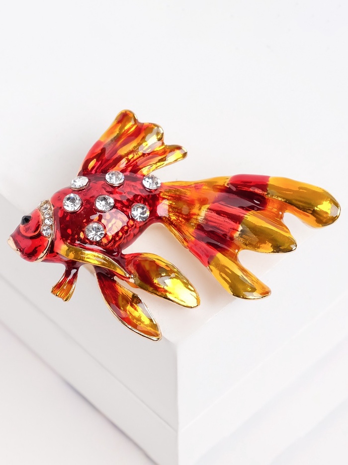 Брошь «Рыбка», цвет красно-золотой в золоте