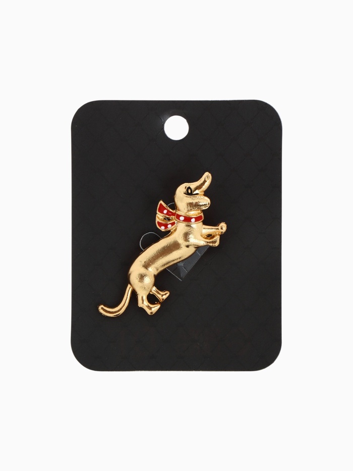 Брошь «Собака» такса с бантом, цвет красный в золоте