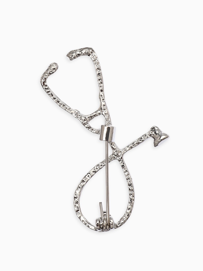 Элегантная брошь в форме стетоскопа с красной эмалью на серебристом металлическом основании станет выразительным аксессуаром для медицинских работников и ценителей профессиональной символики. Размер изделия в 5,3 см идеально подходит для ношения на одежде, добавляя образу стиль и индивидуальность.