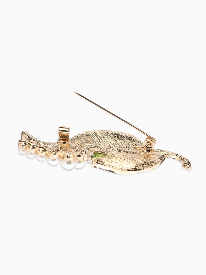 Брошь "Стручок гороха", цвет бело-зелёный в золоте