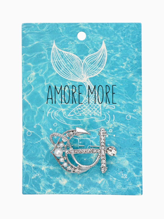 Небольшая серебристая брошь с морским мотивом в форме якоря дополнена белыми бусинками и стразами, создавая лёгкий и свежий образ. Размер 4 см делает аксессуар универсальным для повседневного и праздничного стиля. Украшение станет отличным выбором для женщин, стремящихся подчеркнуть свою индивидуальность через детали с морской тематикой.