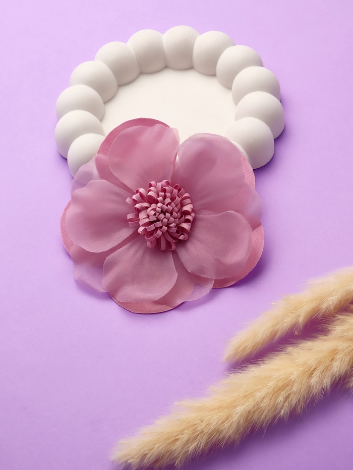 Металлическое основание с серебристой фурнитурой обеспечивает надёжность крепления и долговечность изделия, а текстильные вставки создают объёмную и натуральную текстуру, которая притягивает взгляд и добавляет образу изысканности. Этот аксессуар — прекрасный подарок для близких женщин: мамы, бабушки, дочки или внучки, особенно актуален к праздникам с универсальной тематикой, таким как 8 Марта.
