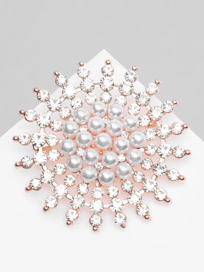 Брошь «Жемчужное сияние», цвет белый в розовом золоте