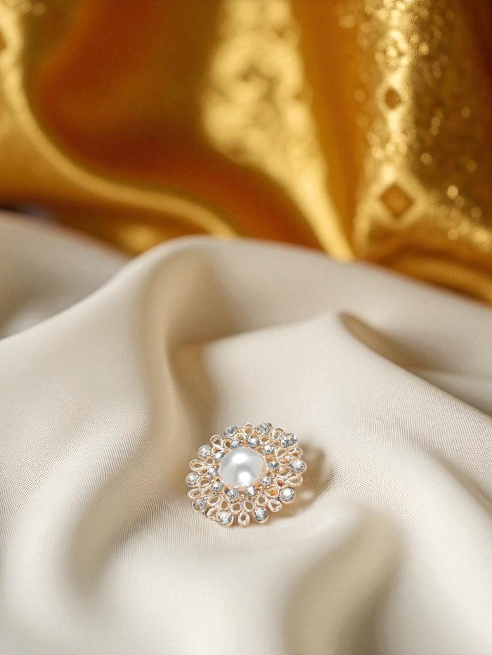 - Высокое качество: металл с золотым покрытием, искусственный жемчуг и стразы обеспечивают долговечность и выразительный внешний вид.