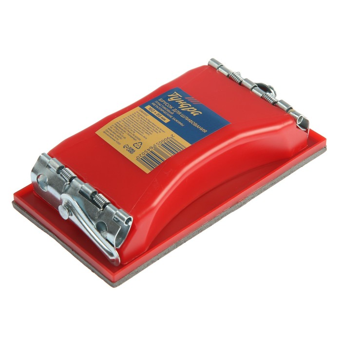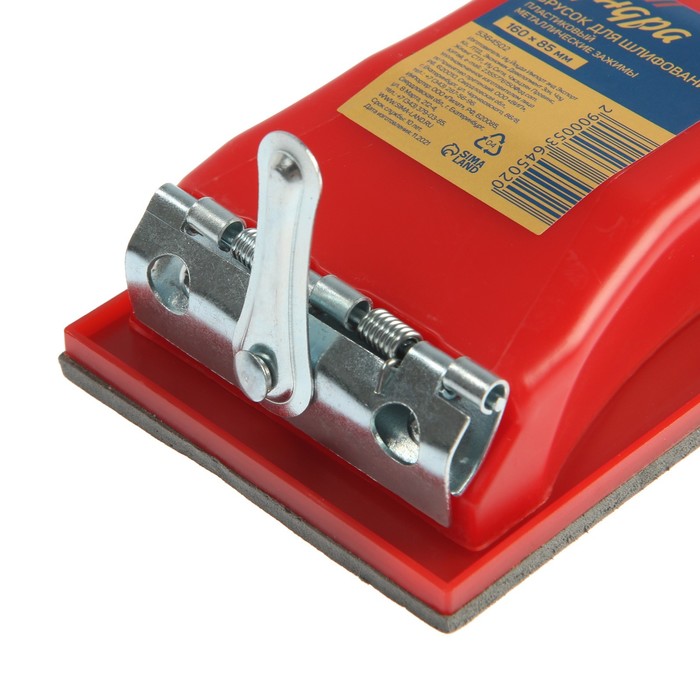Шлифовальный брусок с металлическими зажимами — удобный инструмент для шлифовки поверхностей. Размер 160x85 мм обеспечивает универсальность в использовании.
