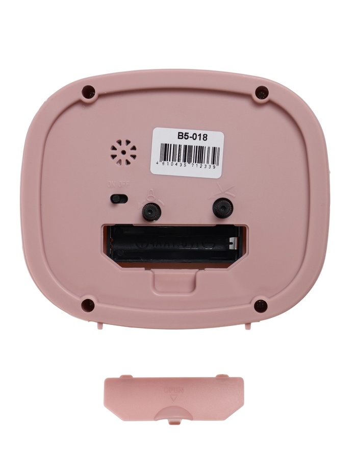 Этот будильник гармонично сочетает функциональность и эстетику, с розовым цветом корпуса и циферблата, который облегчает считывание времени в тёплой, дружелюбной обстановке. Изображение альпаки, выполненное в нежных тонах, символизирует мягкость и дружбу, вдохновляя на позитивное начало дня и снижая утреннее напряжение.