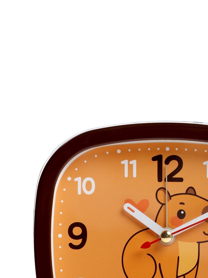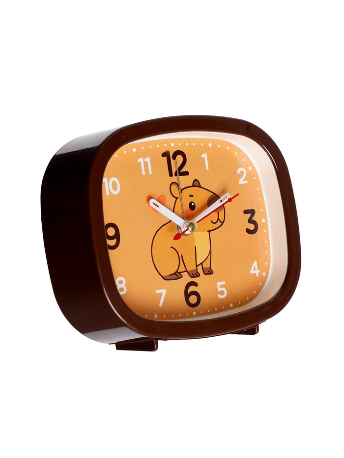 Этот будильник сочетает в себе функциональность и оригинальный дизайн с изображением милой капибары, который оживит интерьер и подарит приятные эмоции с самого утра. Коричневый прямоугольный корпус гармонично вписывается в классические и современные интерьеры, а яркий оранжевый циферблат с чёткими цифрами и забавным мотивом капибары обеспечивает отличную читаемость времени в любое время суток. Плавный ход стрелок исключает раздражающие тиканья, создавая спокойную атмосферу даже в спальне.