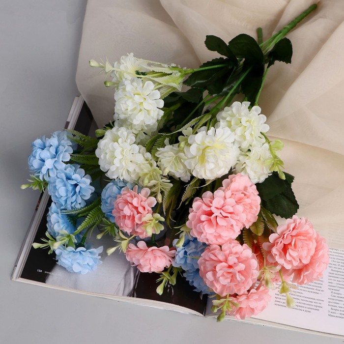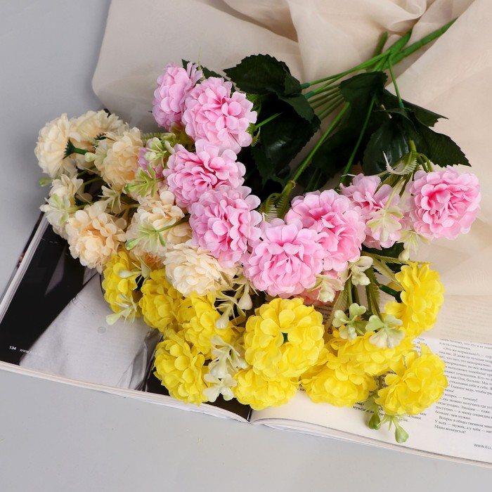 - Цветы выполнены из текстиля, а стебли — из пластика, что обеспечивает долговечность и реалистичный внешний вид без необходимости ухода.