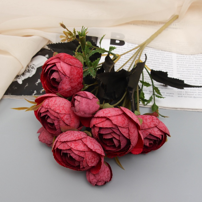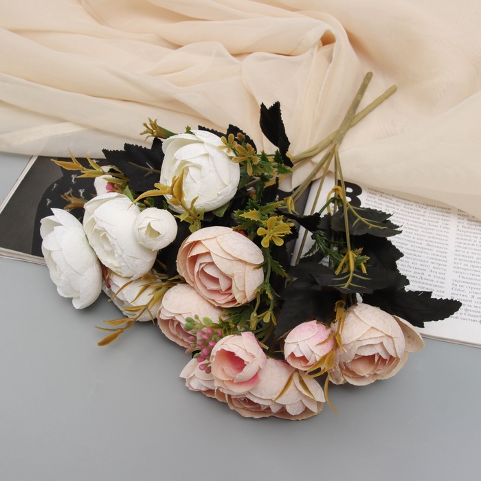 Букет «Пион грация» — изысканный элемент декора, который добавит элегантности любому интерьеру. Высота 25 см — идеальный размер для украшения вашего дома или офиса. Стебли изготовлены из пластика, что обеспечивает надёжность и долговечность, а текстильные цветы придают изделию реалистичность и мягкость.