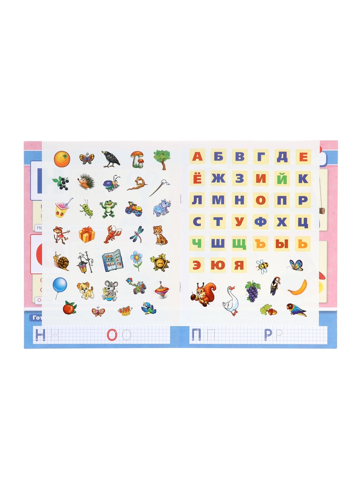 - 50 наклеек для выполнения заданий, что добавляет игровой элемент и мотивирует ребёнка к обучению.
