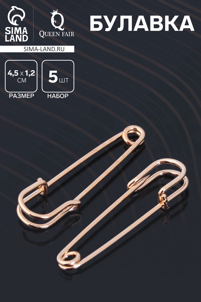 Булавка 4,5×1,2 см (набор 5 шт.), СМ-208-3, цвет золото