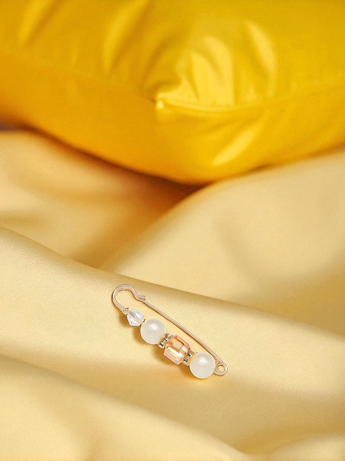 - Универсальный дизайн: сочетание белого, коричневого и золотого позволяет сочетать булавку с широким спектром одежды и аксессуаров.