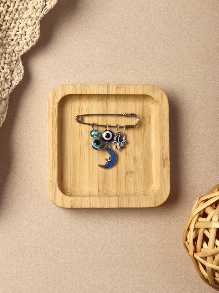 - Стильный дизайн: яркий синий цвет в сочетании с серебряной фурнитурой делает булавку универсальным аксессуаром для любого стиля.