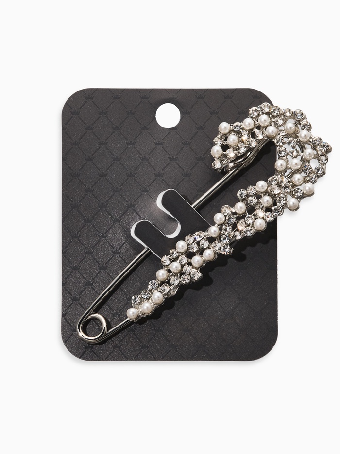 - Абсолютная сочетаемость: белоснежный жемчуг и мерцающие кристаллы в сочетании с серебристым основанием являются беспроигрышным решением для любого типа одежды.