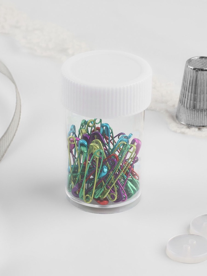 Английская булавка — универсальный помощник в быту, при шитье и рукоделии. Она пригодится для закалывания материала, драпировки ткани, создания украшений. С ней вы можете прикрепить к одежде или домашнему текстилю мягкие аксессуары. Острый край булавки прячется в безопасную петельку, она не уколет и прослужит вам долго.