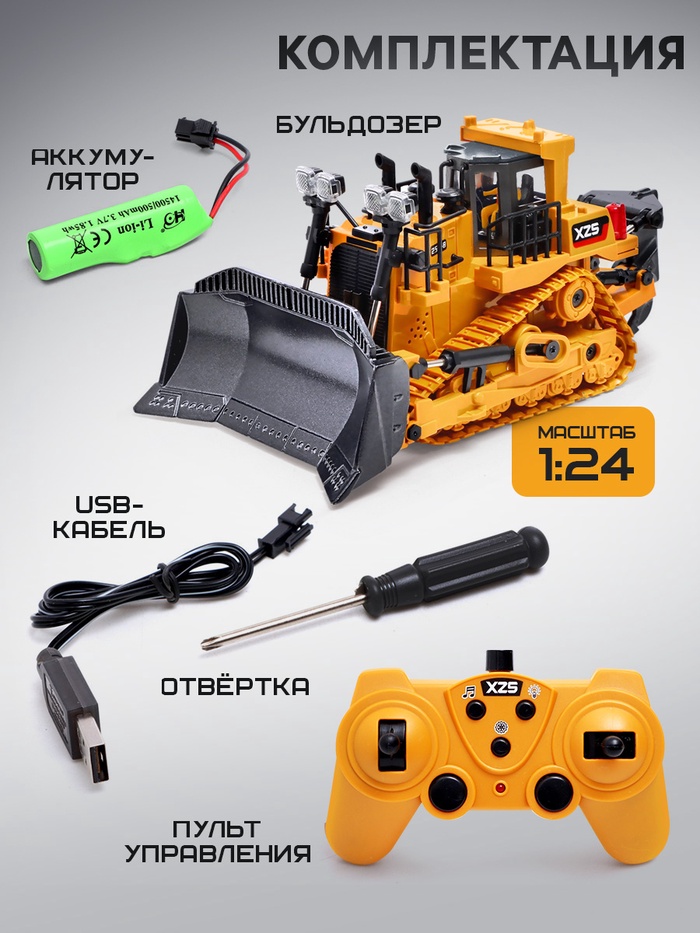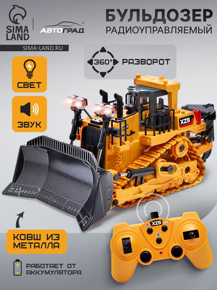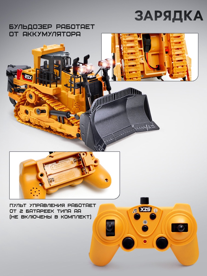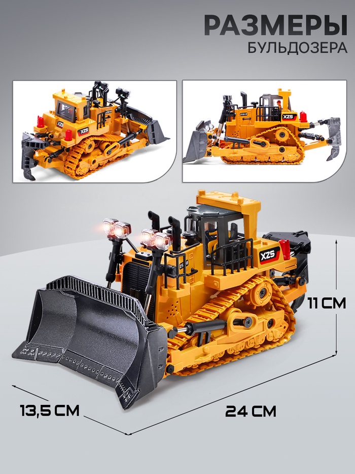 С радиоуправляемым бульдозером ребёнок представит себя профессиональным водителем спецтранспорта. Техника ездит на резиновых гусеницах, у неё подвижный ковш, она способна разравнивать грунт для последующей стройки!
