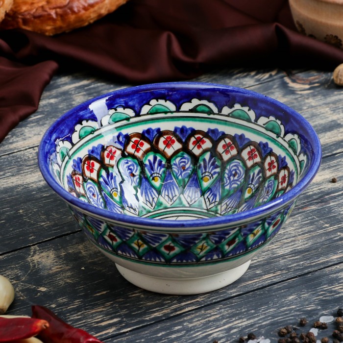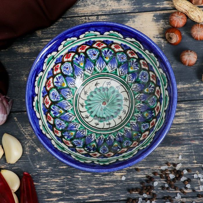 Бульонница узбекская Риштанская Керамика «Узоры», 900 мл, d=18 см, синяя