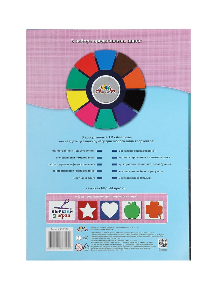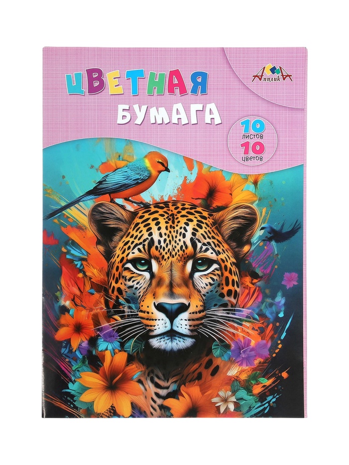 Бумага цветная А4 10л 10цв 70г/м² "Яркий леопард", 1-стор, офсет, папка