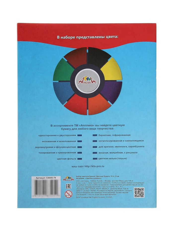 Бумага цветная А4, 16 листов, 8 цветов «Цветные домики», газетная