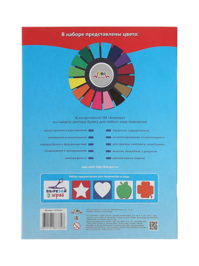 Бумага цветная А4 32л 8цв 50г/м² "Котёнок с мороженым", 1-стор, газет, скоба