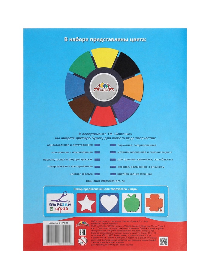 Бумага цветная А4 8л 8цв 50г/м² "Яркие полоски", 1-стор, газет, скоба