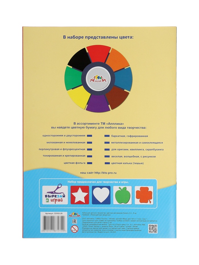 Бумага цветная А4 8л 8цв 60г/м² "Разноцветные звёздочки", 1-стор, мел бум, скоба