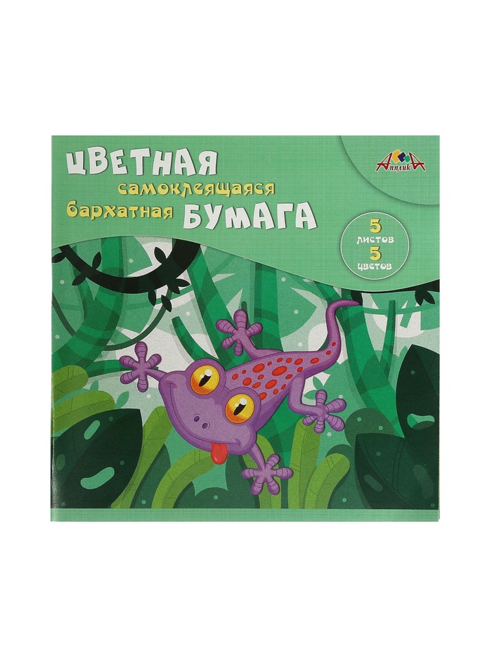 Бумага цветная бархатная 54 10л 10цв 240г/м² "Веселая ящерица", самокл, в папке