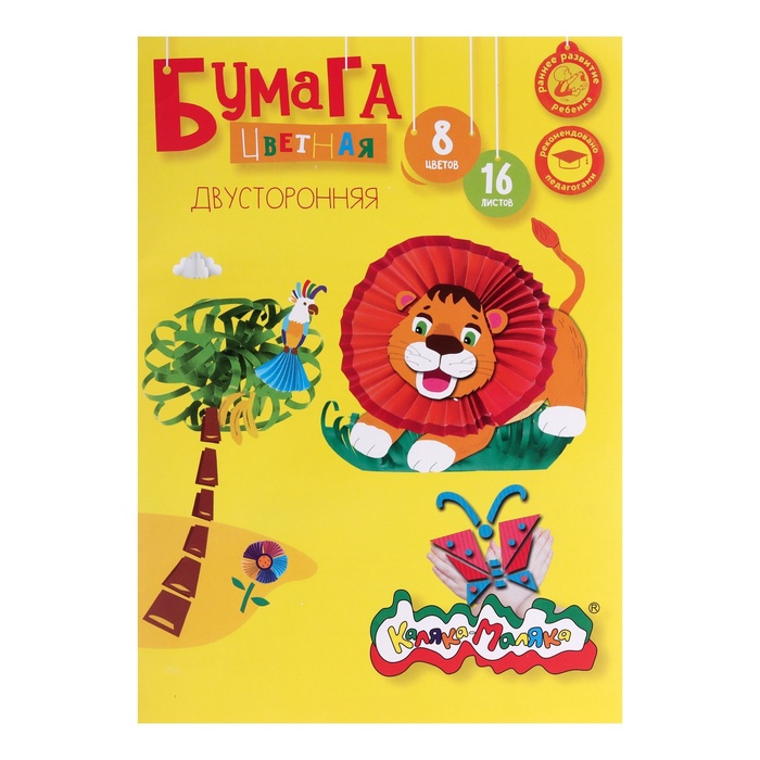 Бумага цветная «Каляка-Маляка», А4, 16 листов, 8 цветов, двусторонняя, на скрепке