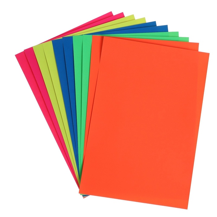 Бумага цветная самоклеящаяся А4, 10 листов, 5 цветов, флуоресцентная, 80 г/м2