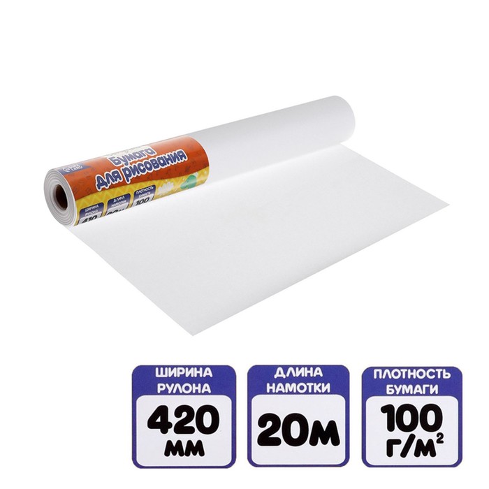 - Рулон бумаги плотностью 100 г/м2 имеет ширину 42 см и длину 20 метров.